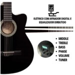 Especificações: Modelo: Violão Flat Cutaway Eletroacústico Nylon